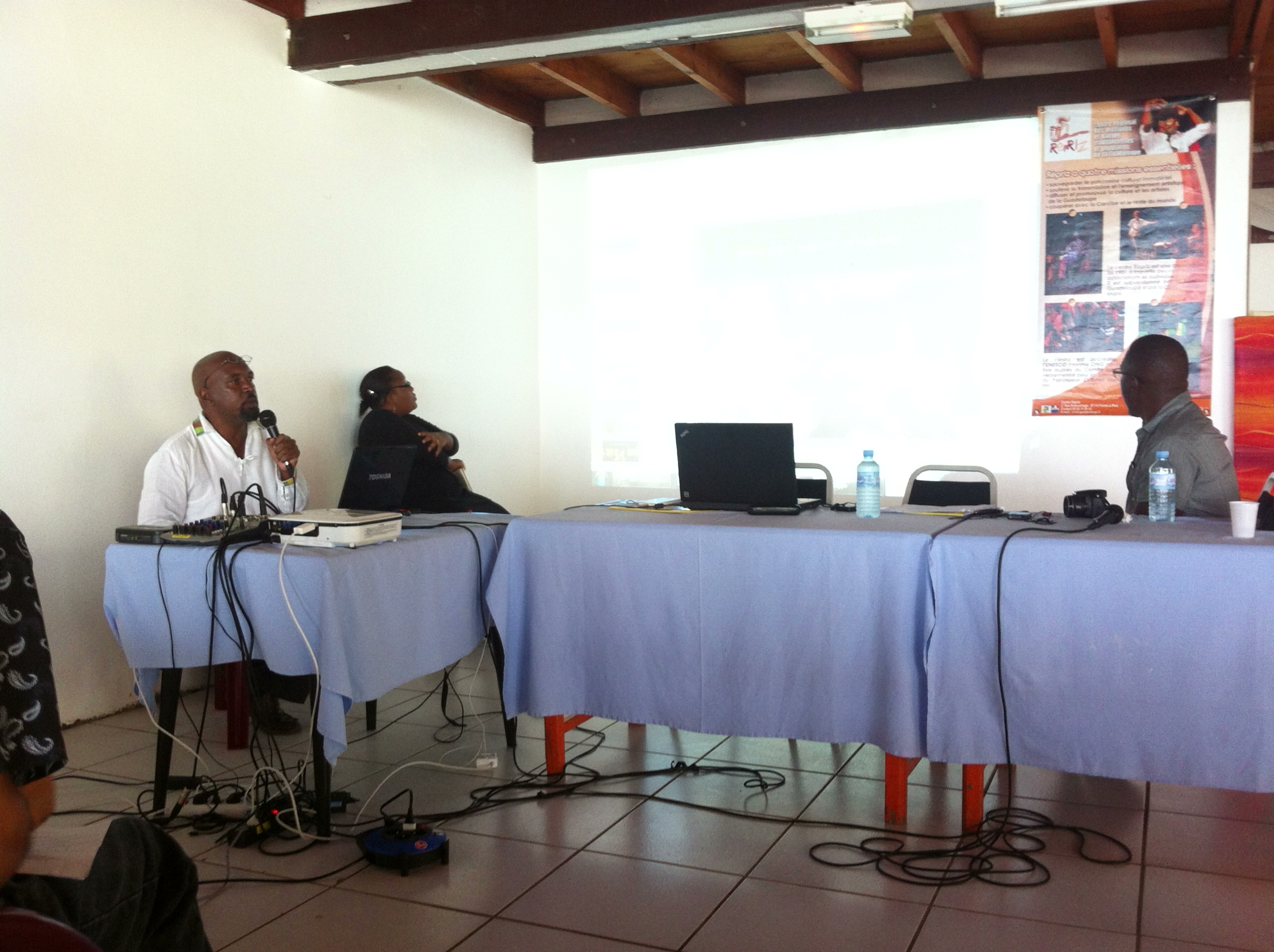 C’est d’ailleurs dans cette perspective que se sont achevées ses rencontres avec une table ronde réunissant tous les participants et cherchant à mettre en place une politique de collaboration pour la mise en oeuvre de la convention sur le PCI dans l’espace Caraïbe. Mais si toutes les personnes présentes ont affiché une bonne volonté sincère, la discussion n’a malheureusement pas abouti sur une projet concret, ni même sur une ébauche de directives. La collaboration inter-régionale dans la Caraïbe se heurt ici à de nombreux problèmes que ce séminaire a d’ailleurs très bien illustré: différentes cultures politiques et bureaucratiques rendent encore plus difficiles les relations sur le long terme entre les organisations gouvernementales des états indépendants et les associations non-gouvernementales, néanmoins soumises aux aléas politiques de leurs métropole, pour les pays non-indépendants. A cela viennent s’ajouter des aspect d’ordre pratique, par exemple les divisions linguistiques au sein de la région: les rencontres de Sainte Anne n’ont pu fonctionner que grâce au travail de deux interprètes. Pour que de véritables collaborations puissent voir le jour dans la Caraïbe, il faudrait que les professionnels de la culture s’engagent à apprendre plusieurs langues: anglais, espagnol, créole francophone, mais aussi hollandais ou papamiento. Il faudrait aussi que la région bénéficie d’une nouvelle infrastructure de transport permettant le voyage rapide d’une ile à l’autre: les périples auxquels les participants ont du faire face pour arriver en Guadeloupe ont révélé à quels points les services offert par Liat, Caribbean Airlines et Air Antilles sont insuffisants. Cependant, on peut espérer que les échanges inter-personnels que ces rencontres ont permis vont, avec un peu de chance et d’efforts, déboucher sur de nouveaux projets de collaborations, qu’ils soient entre artistes, entre associations ou entre états.